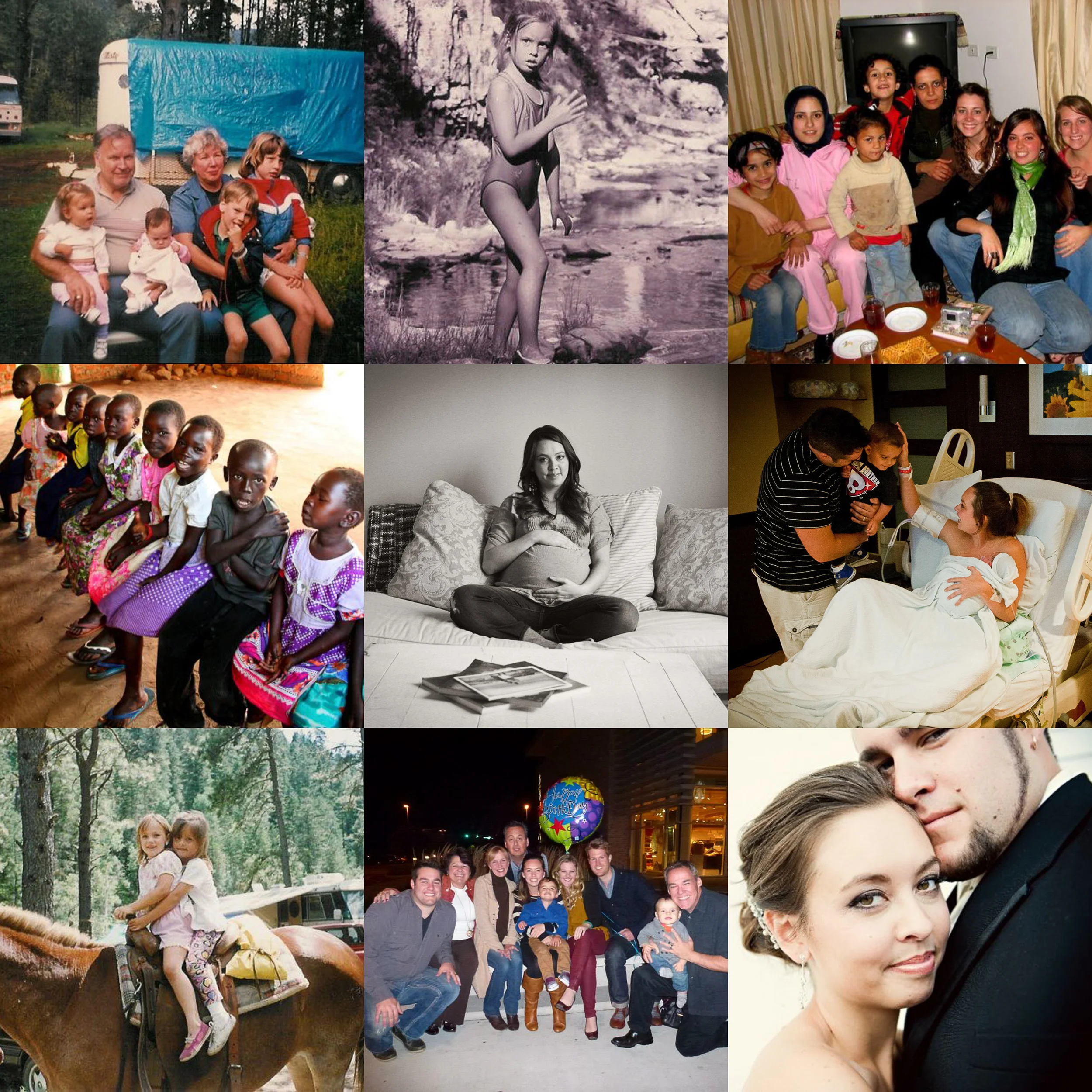 Middle Row: Left - My preschool class in Sudan. Middle - pregnant with our firstborn, Kai. Right -Big brother meeting little brother for the first time.